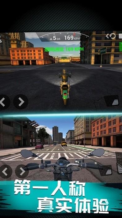 2、驾驶拟真的摩托车,在规定的道路上挑战用更短的时间达到终点