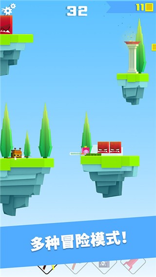 1、游戏中的操作方式就是点击跳着前进,距离比较远的地方需要连续点击两次,更远的地方需要连续点击三次才可以,这也是基本的操作。