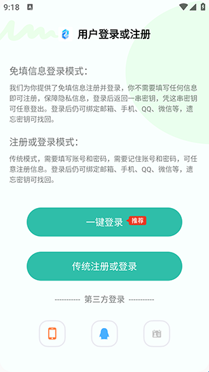 2、可以选择一键登录,或者选择传统登录方式,输入账号密码,点击登录。