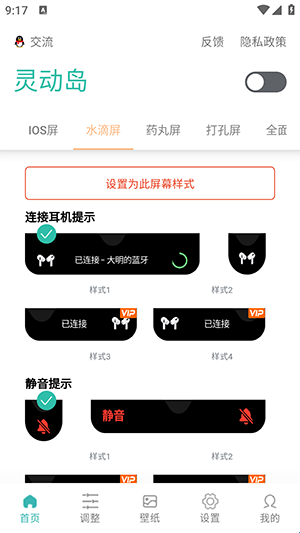 2、进入首页,选择你喜欢的灵动岛呈现方式。