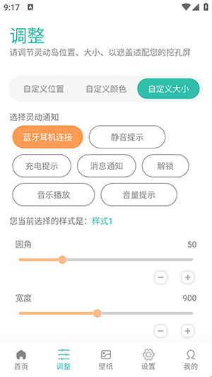2、完美适配安卓挖孔屏、刘海屏等各类屏幕形态,支持调整灵动岛的大小、位置与动画效果,匹配不同品牌手机的显示特性。
