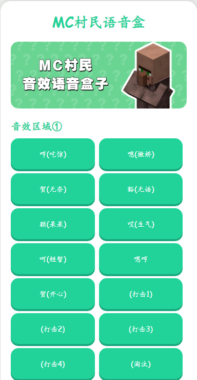 MC村民语音盒app是一个很优秀的语音素材软件,这里给大家提供经典的我的世界村民的语音,这里的语音非常的还原,使用也非常的方便,很多社交软件和游戏都可以使用。软件是完全免费的,界面简洁,村民的语音非常的简洁清晰,听起来也不是很难,可以满足不同人的使用需求。