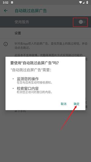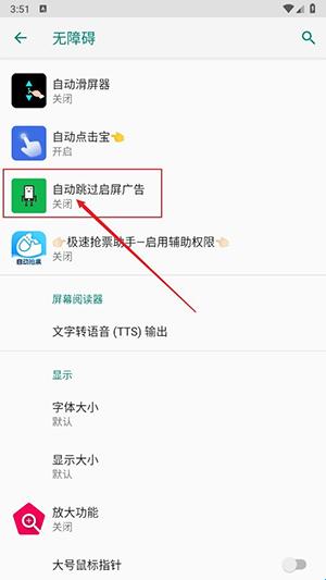 2、在无障碍页面点击"自动跳过启屏广告"进入。