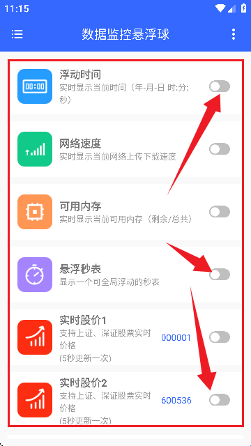 5、然后选择想要开启的悬浮功能,点击右侧的控制按钮即可。