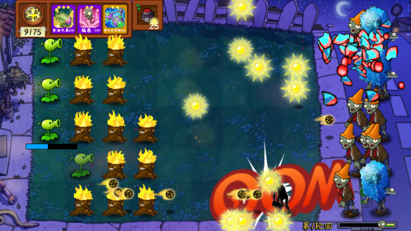 4、中期的话,收集足够阳光,这样才能应付后面的僵尸大军。
