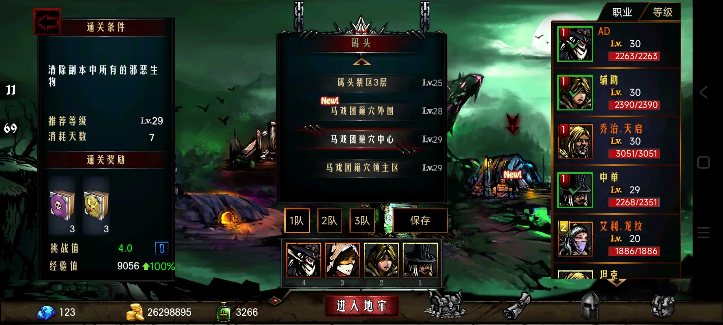 然后四个低等级英雄,组队进入你能进去的最高级的地方。