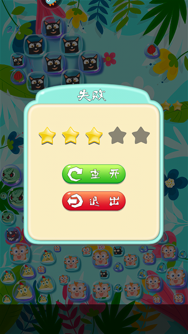3、卡通的画面丰富了玩家的乐趣,你也可以使用道具来更快的完成消除获得奖励哦。