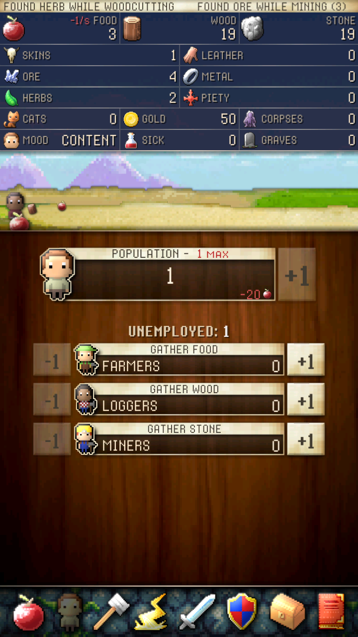 收集资源,建造帐篷,招募工人为自己工作。
