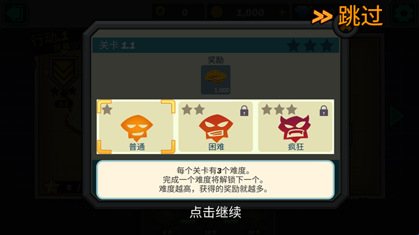 点击关卡进入,可以看到每个关卡都有三种不同的难度;