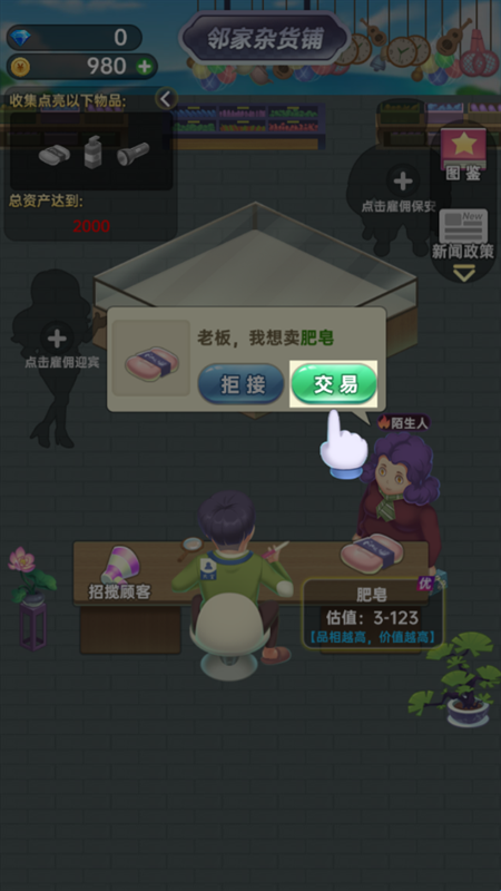 很快,我们就会遇到第一个顾客,我们直接在这里点击交易按钮。
