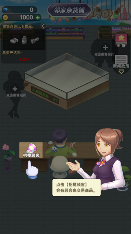 打开游戏,我们就能够看到一个非常卡通可爱的游戏界面,我们在这里点击招揽顾客。