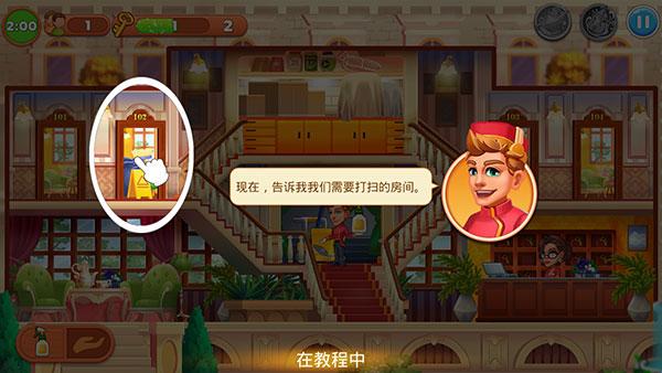 1、打开帝国发烧酒店游戏,将会开启一段教程引导。