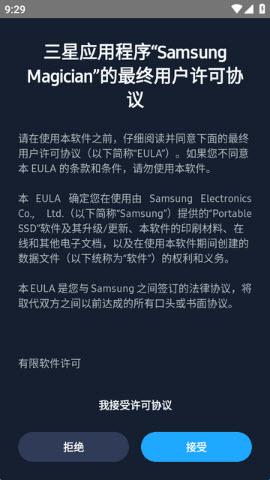 1、下载安装三星魔术师app,之后打开,允许权限,接受许可协议;