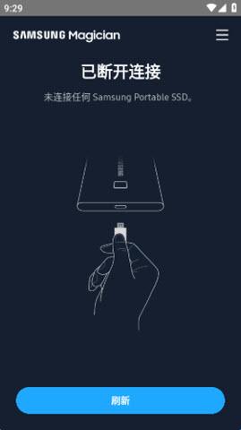 2、打开手机上安装好的SamsungMagician应用,它会自动检测并识别连接的硬盘。