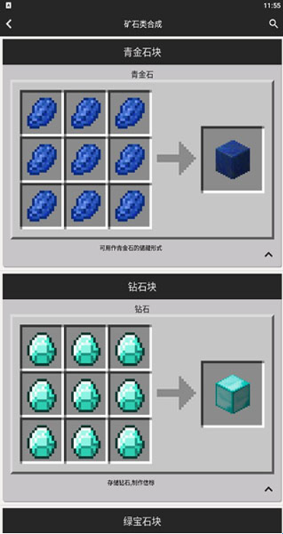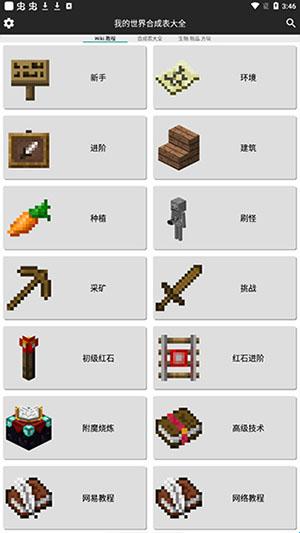 我的世界合成表大全(最新完整版)专为我的世界玩家量身定制的辅助工具,帮助大家查看我的世界游戏合成所需物品的辅助客户端应用,包括工具、武器、装备、建筑材料等,玩家可以通过搜索或浏览的方式快速找到所需物品的合成方法,每个物品的合成界面都配有清晰的图片和详细的合成步骤,为玩家提供了直观而全面的合成信息。