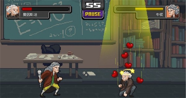 科学格斗中文版用像素的画风设计了精美的场面和科学家角色,每一位科学家角色都简洁生动地还原了他们的外貌特征和能与现实成就对应上的技能招式,让玩家感受到游戏的趣味性,以及格斗带来的热血感。