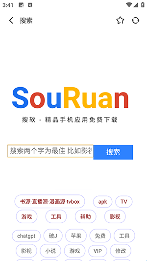 聚合资源站app当前为最新6.0版本,全新升级,内置界面舒适简洁,支持关键词搜索获取想要的免费软件资源,并且所有软件都是安全无病毒的,大家可以放心安装在手机上使用喔!以及更多特色福利内容尽在聚合资源站app!