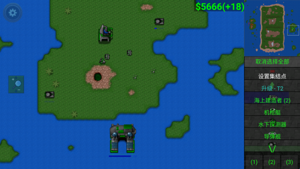 (2)不急着造实验单位,先造炮塔。建议造3排:T3重机枪+T2火炮+T3萨姆导弹,后面空一排,再放一排修复湾。可以在机枪前面放一排喷火器,用于克制小坦克群。