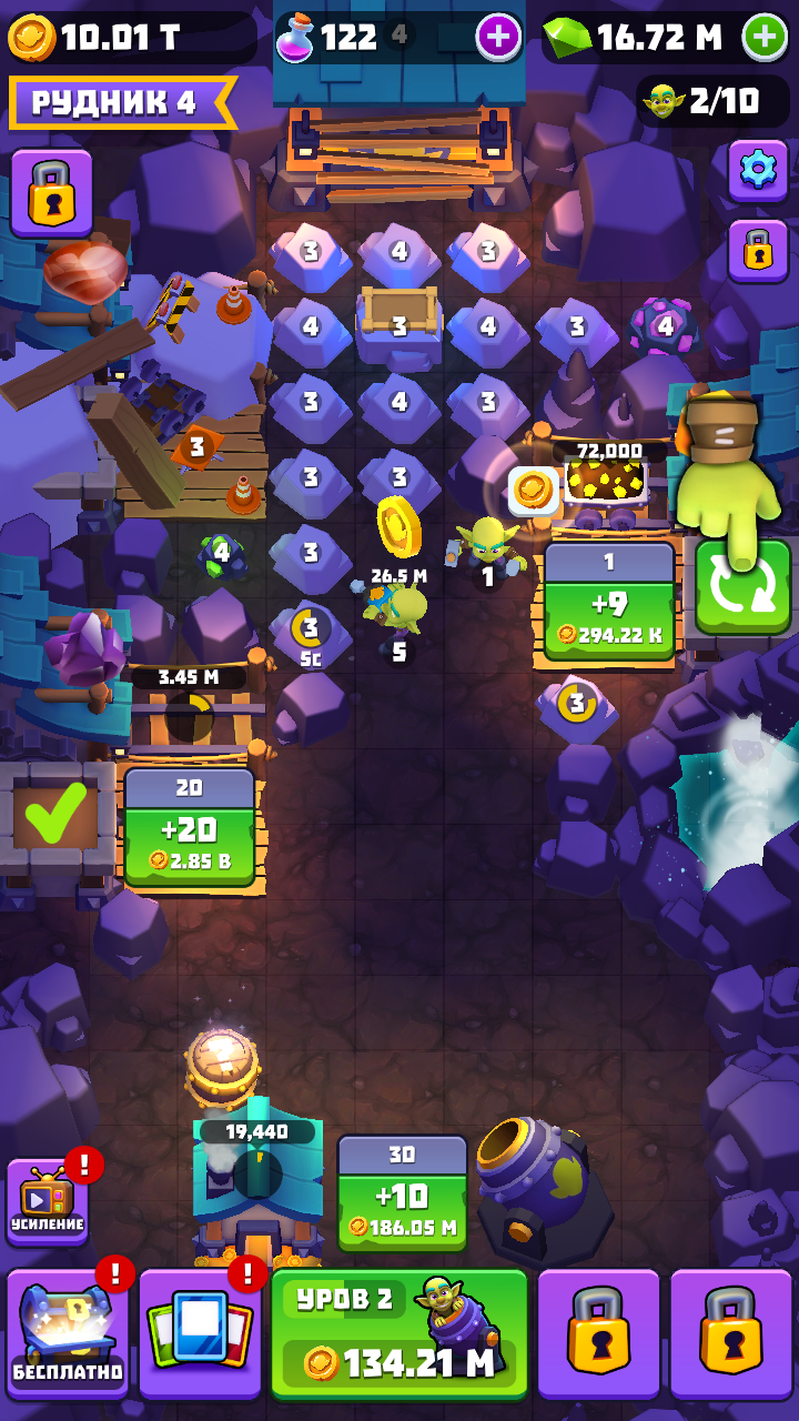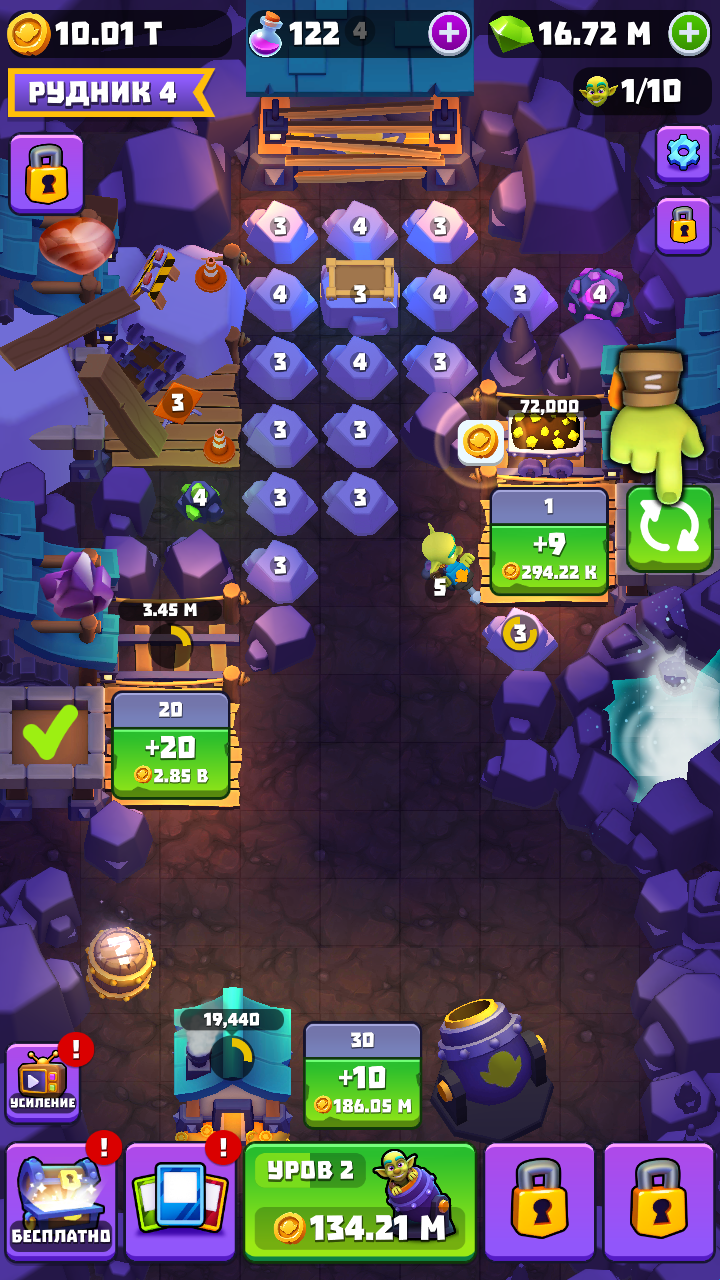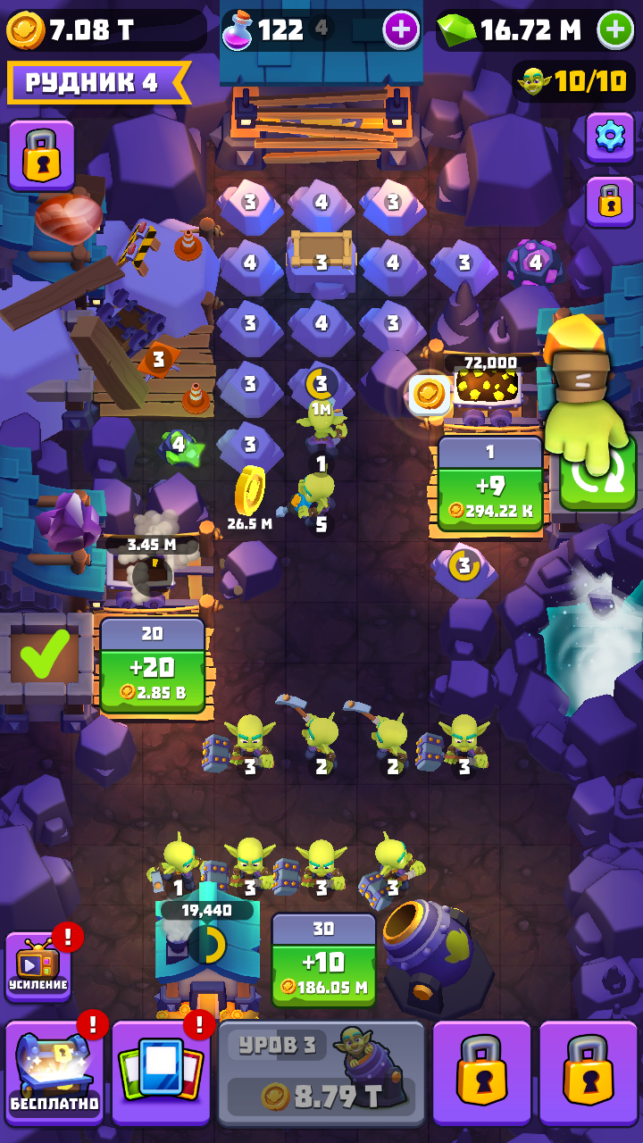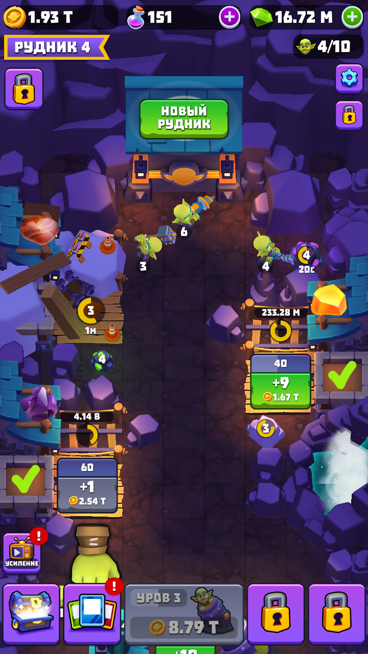 6、根据自己的想法去合成更多强大无比的哥布林,然后就是解锁全新的矿井完成提升黄金收入。