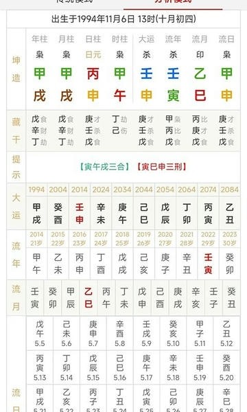 八字排盘,根据先天、大运、流年盘等相关知识推算出命运排盘;