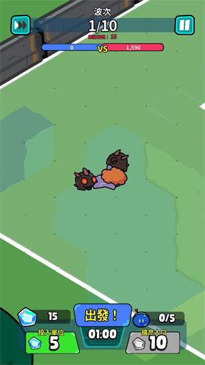 3、放好小兵后点击出发按钮来开始闯关,点击出发后小兵会自动攻击出现的敌人。