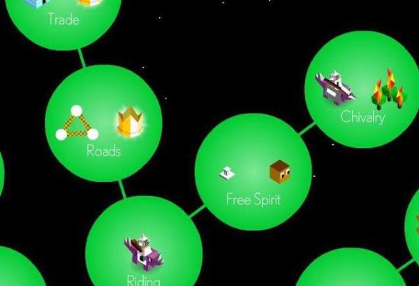 Roads(道路),功能类,学习后可以在不是敌人国家范围内的陆地(除了山)修道路。踩在道路上的兵沿着路可以获得一倍的行动距离,如果任何一个城市通过任何方式和首都(Capital)连接在一起,则形成贸易链,为这个城市和首都各自提供一个人口。