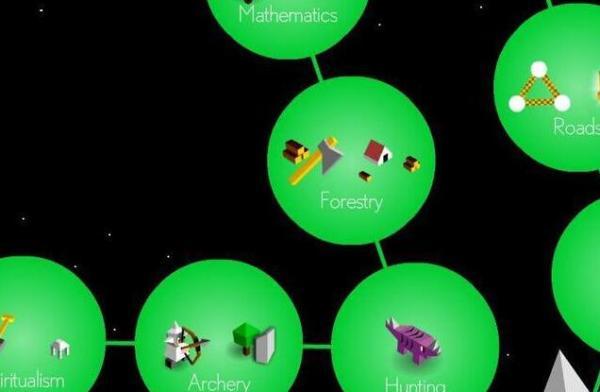 Forestry可以说是一个非常变态的发育类科技,对某些种族来说,学出Forestry后就熬出头了,因为自己的城邦可以在短时间内爆发式发育起来。 Forestry允许自己对城邦范围内的树林进行两种操作,分别是:砍伐(cleanforest)和小伐木屋(lumber hut)。前者使森林消失,立刻提供两个星。这个技能合理使用非常厉害,给其他建筑让位,或者解自己紧急之需。而后者则是将树林变成小伐木场,消耗两星提供一个人口,这个需要和最后一个Mathmatics配合起来,才厉害。