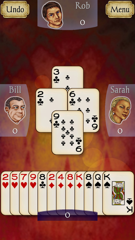 c、只要允许出红桃,就拿它们发牌。在游戏初期尽可能拿到最多的分数。一旦对手识破了这种用意,他们就会竭力阻止。