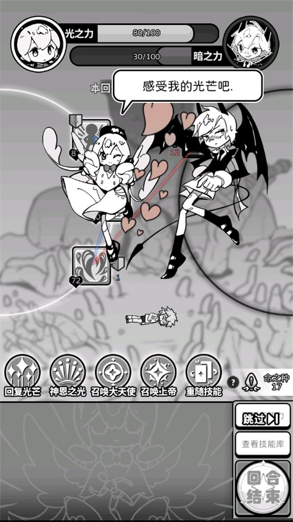 4、采用回合制的战斗玩法,自由选择摸牌和出牌等多种特效。