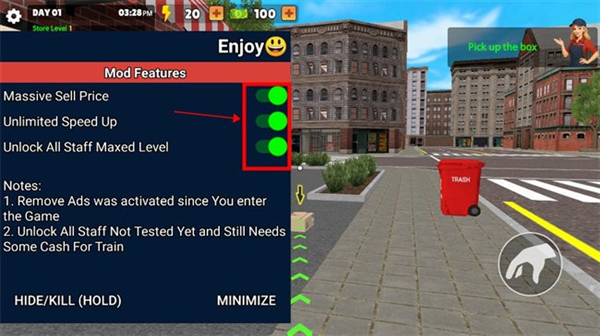 注:模组增加未解锁员工,请自行使用钞票解锁使用