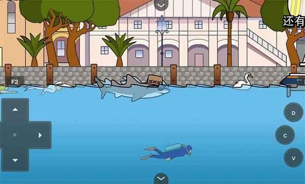 按键方向键 = 控制移动,A或CTRL = 攻击,潜到水底然后冲出水面会跳的更高