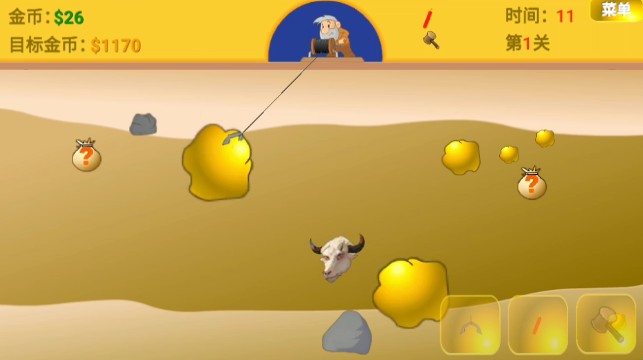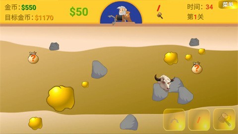 2、游戏玩法简单,和原版黄金矿工差不多,钩取黄金,到达目标分数即可胜利。