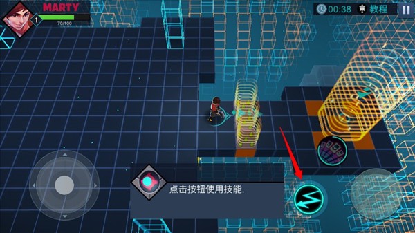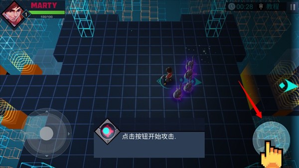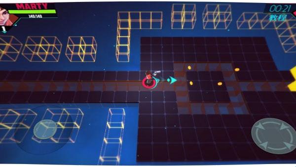 2、使用虚拟摇杆控制移动,射击键进行攻击,通过闯关收集各种武器和特殊技能。
