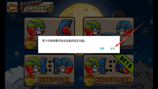 3.在弹出的权限提示中允许游戏使用蓝牙即可开启蓝牙对战