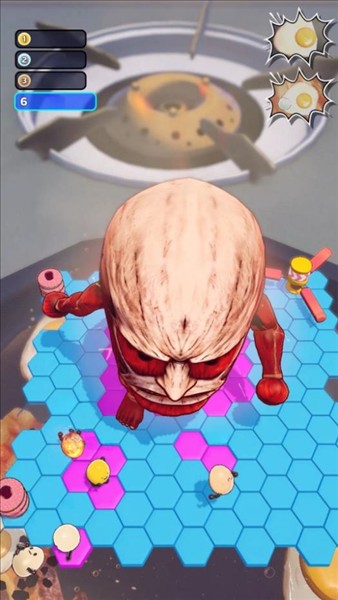 2、最多8人同时在线乱斗,与好友组队或各自为战,在煎锅上展开混战,体验与朋友互坑互怼的快乐。