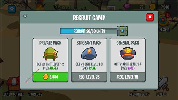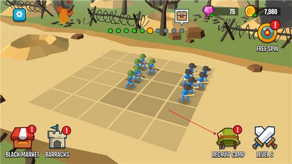 第一步:进入游戏后,点击屏幕右下方按钮,即可招募新士兵,开启你的建军之路。
